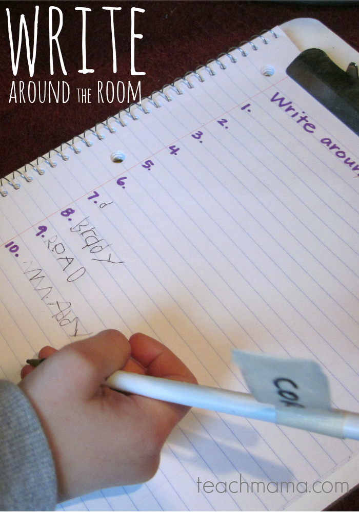 • Write Around the Room: Write Around the Room is just that–giving kiddos the task of writing the words that they see in any room.